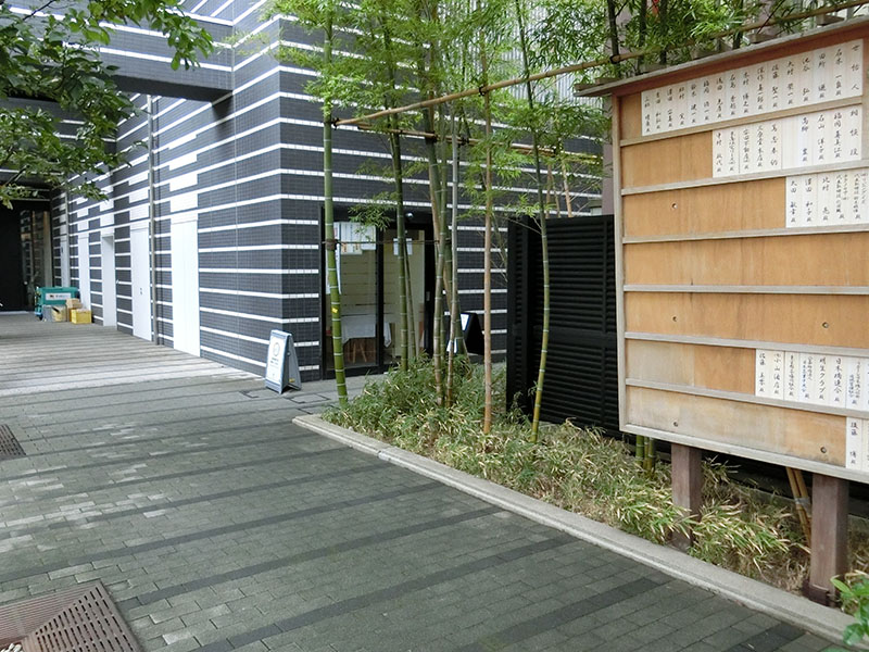 左のビルに授与所らしきものが見えますので、後ほど行ってみることに。竹の木も伸びています。