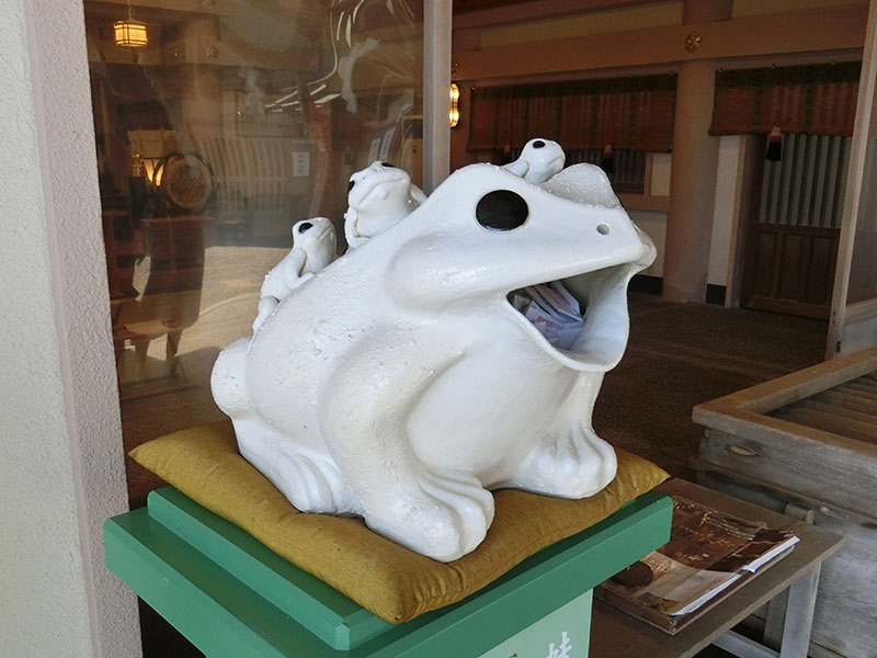 境内のいたるところには二見蛙さんがいまして、これがまた可愛いんです。無事カエル、お金がカエルなど、縁起のいいものとされています。僕たち夫婦も蛙の御守りをいくつか購入させて頂きました。