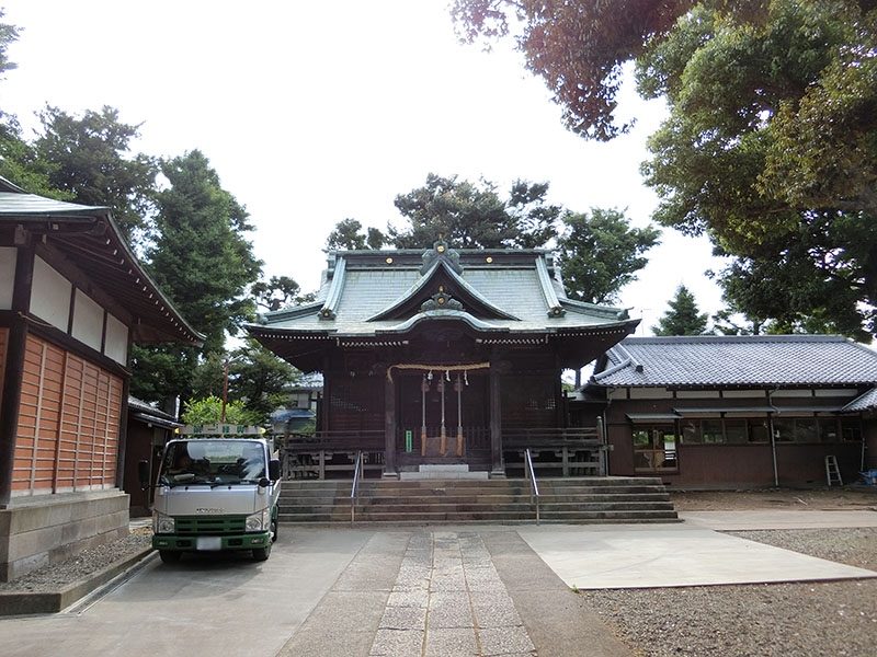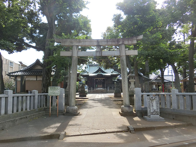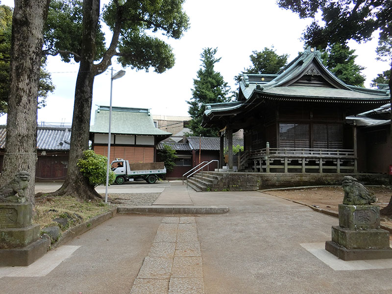 粕谷八幡神社からは15~20分ほどだったでしょうか。路地の先に木々と玉垣が見えてきました。