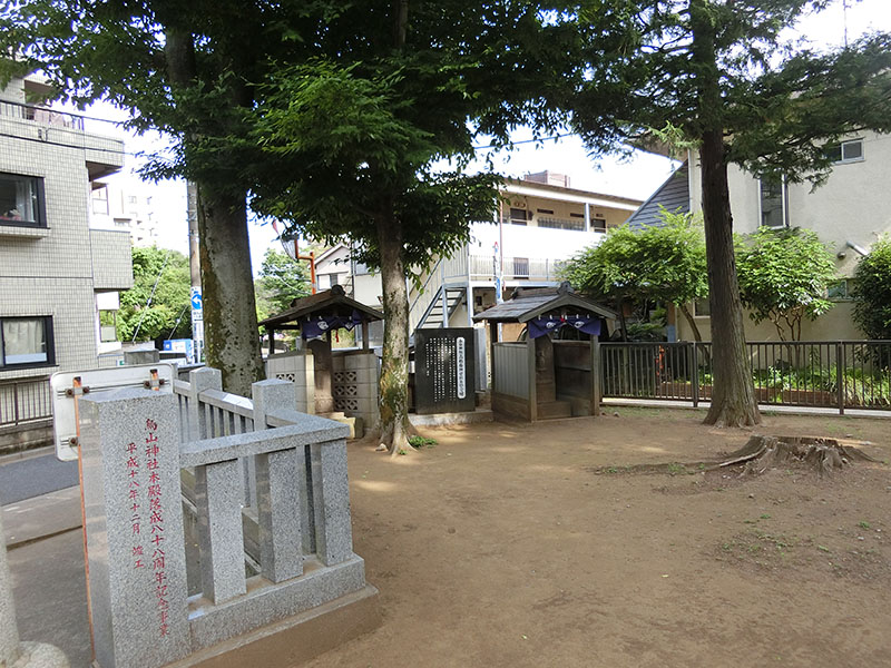 よく見ると記念碑の後ろにも祠がありました。こちらにも手を合わせ、烏山神社を後にします。