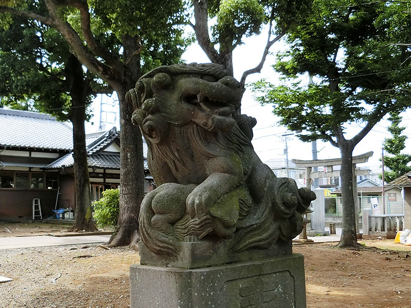 こちらが左の狛犬さん。後ろは神輿庫です。