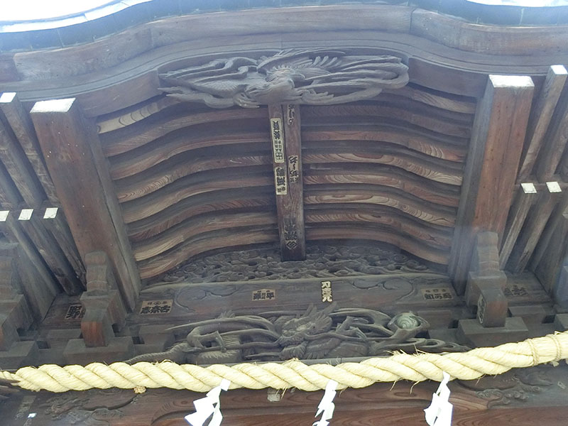 水引虹梁には龍、その上は鳳凰でしょうか。