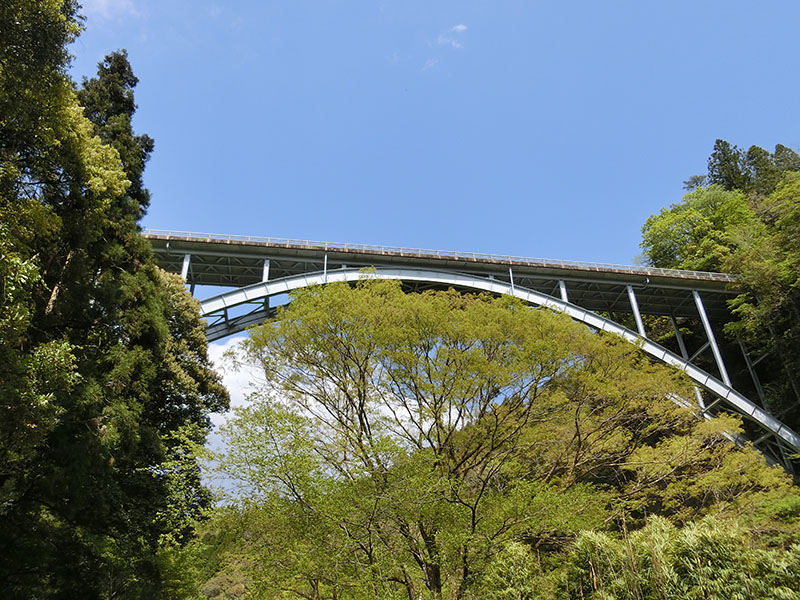 あららぎ乃茶屋前にて振り返ると見えるのは、高千穂大橋。あの橋の端が入口(第3大橋駐車場)でした。