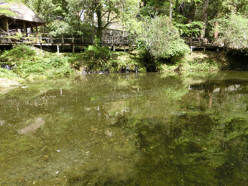 その先に「七ツヶ池(ななつがいけ)」です。高千穂神社のご祭神である三毛入野命(みけぬのみこと)が、この池に映った鵜ノ目姫(うのめひめ)に一目惚れしたといわれている池です。鵜ノ目姫は三毛入野命の妃になっています。